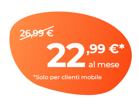 Velocità di navigazione fino a 1 Gigabit/s in download e 200 Mb/s in upload che arriva a 300 Mb/s nelle Aree Bianche. Solo in caso di Super Fibra in FTTH Aree Bianche e FTTC NGA l'offerta costa 24,99€/mese. Costo di attivazione previsto pari a 9,99€.
